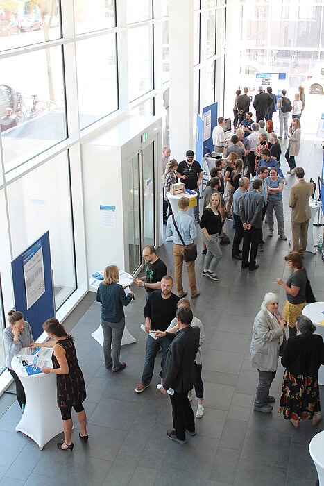 Fünf Bereiche, die sich mit Videos in der Lehre auseinandersetzen, wurden im Foyer des Nieper-Baus von Mitarbeitern der Fakultät Informatik und Medien, Studifit, Lit+ und dem E-Learning-Team präsentiert: Ein Stand gab einen allgemeinen Überblick über die Didaktik für Lernvideos, außerdem wurden die Themen Vorlesungsaufzeichnung per Knopfdruck, professionelle Filmproduktion, Legetechnik/Animation und Screencasts vorgestellt. Die Info-Materialien aller Bereiche finden Sie hier in der rechten Seitenleiste (Desktop) bzw. am Ende dieser Seite (Mobil) zum Download.