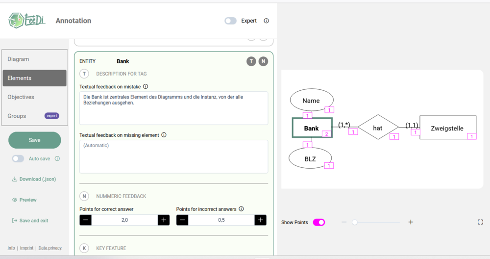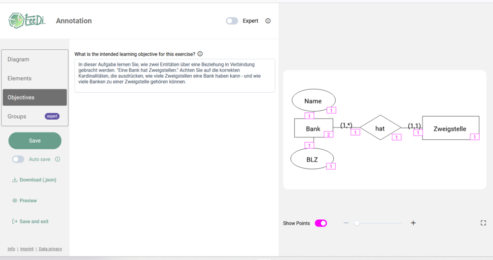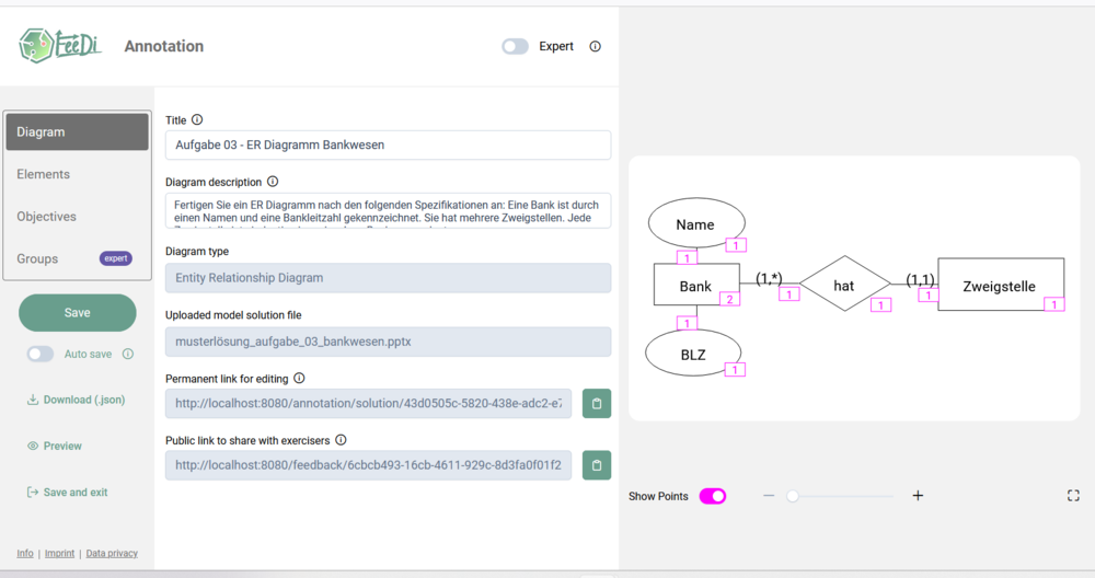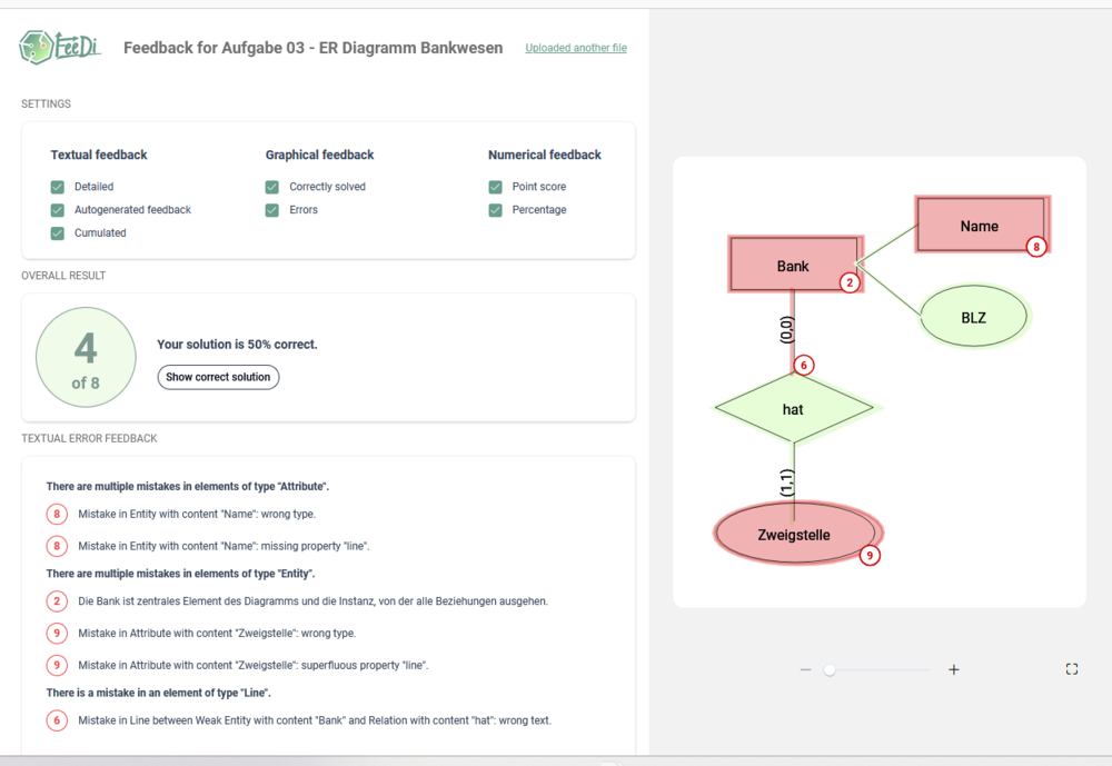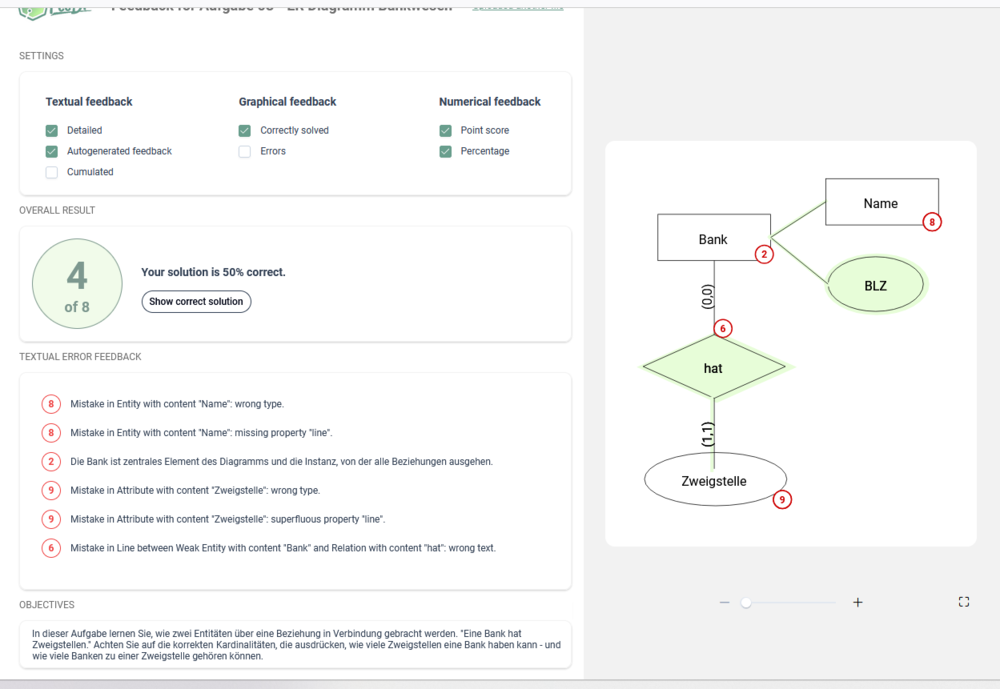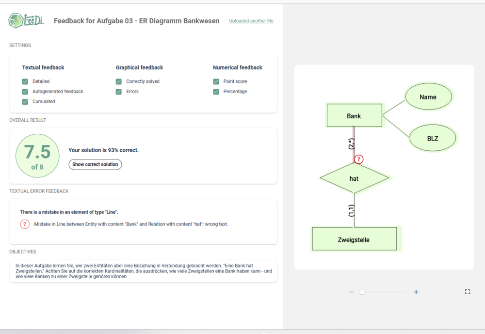 FeeDi bietet Lehrenden eine Obefläche zum Erstellen von Musterlösungen und gibt Lernenden automatisiert Feedback auf ihre Diagramme.